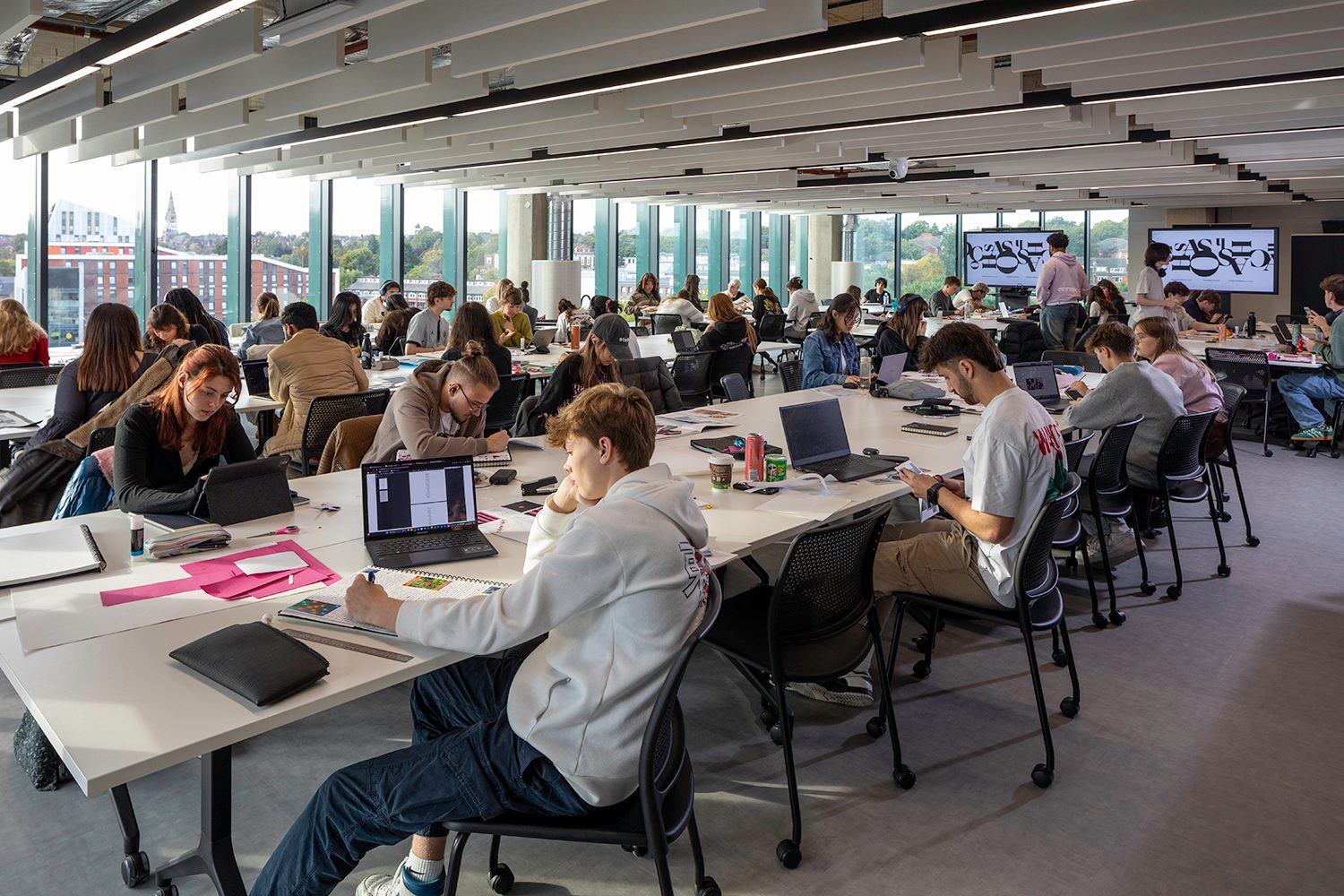 DaDA strengthens the University’s connection with Nottingham and the broader creative industries. Its transparent ground floor and exhibition areas showcase student work, while the large digital screen presents a constant showreel of projects. Public events hosted within the building allow the wider community to engage with NTU’s students and facilities.