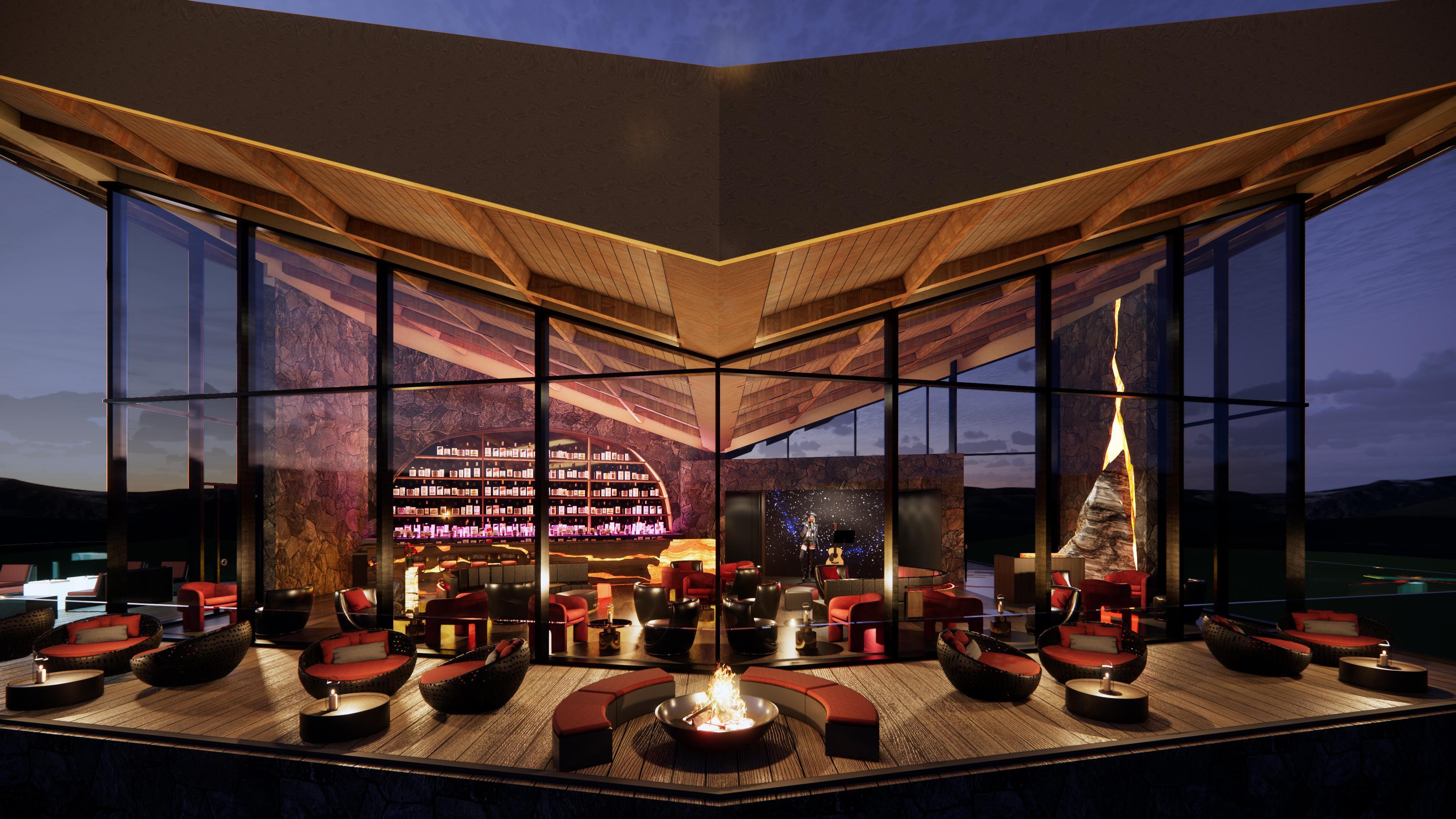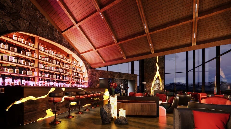Perched at the edge of the resort’s quarry basin, the Dragon Bar offers panoramic views across the blue water lakes and surrounding natural landscape. The architecture embraces bold, contemporary forms to complement the rugged topography, creating an iconic and memorable experience for guests.