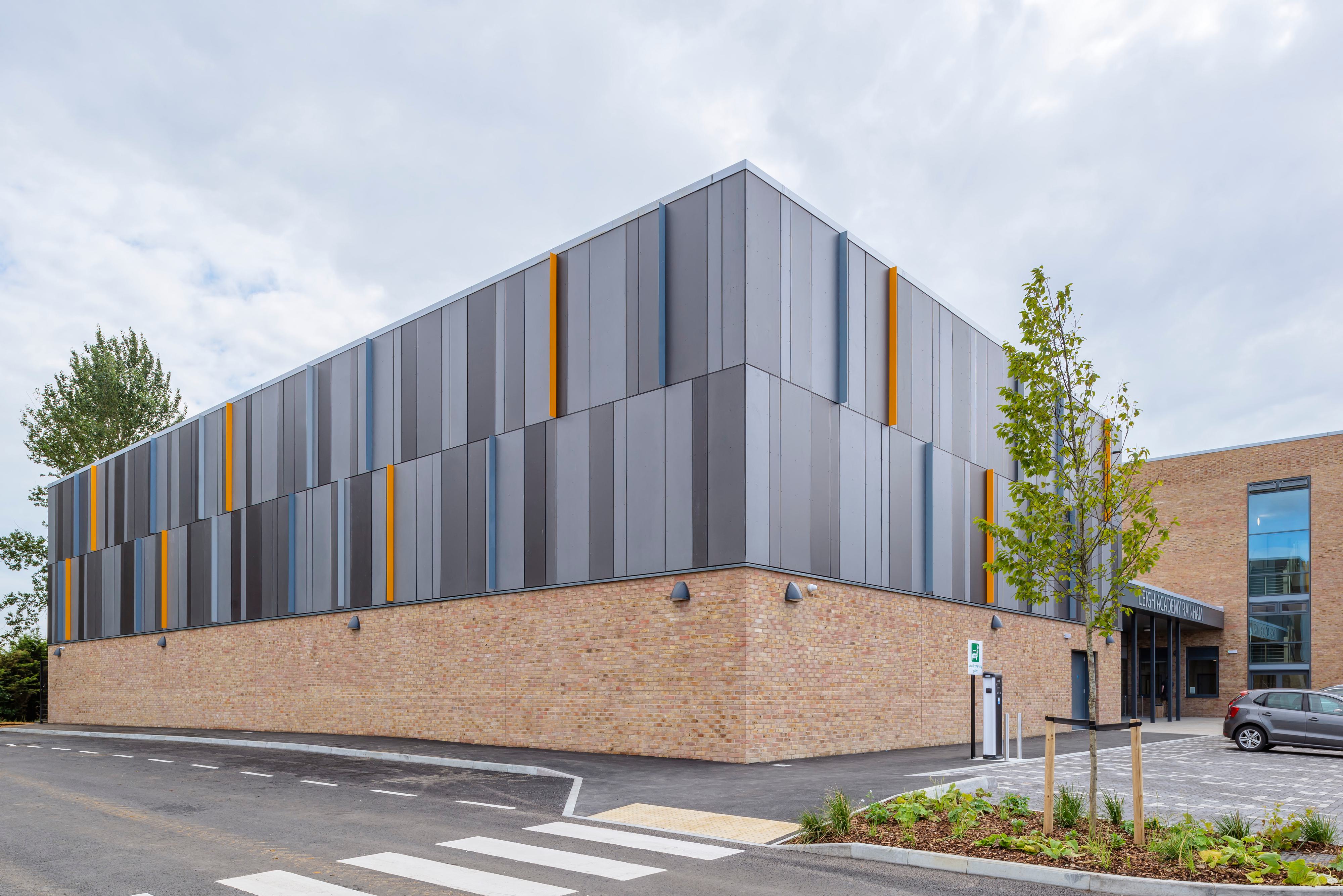 The building massing and elevational treatment was key to securing planning consent on a sensitive greenfield site, and the design capitalises on retained and enhanced landscape features to provide visual screening and a rich ecological setting for the new school.