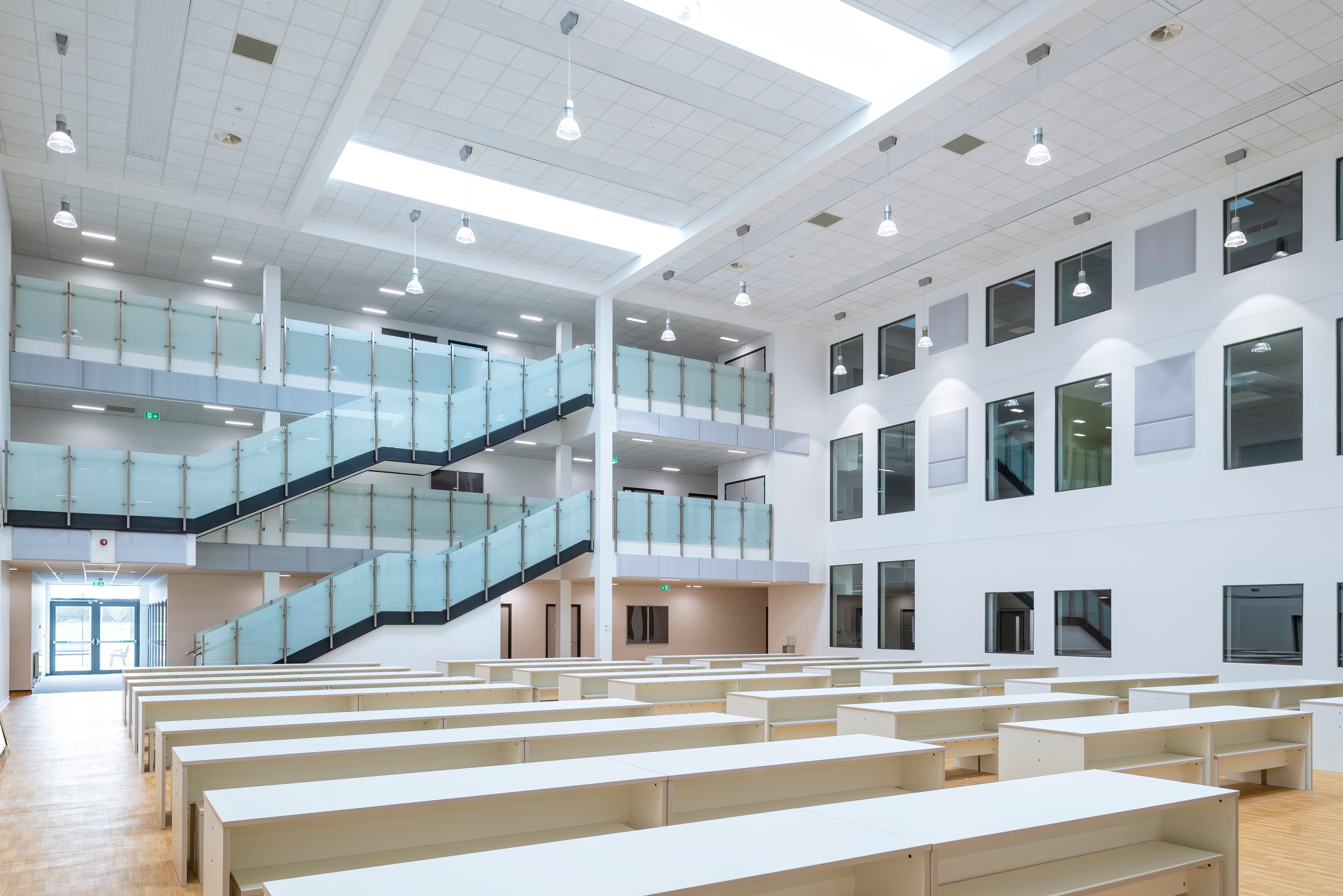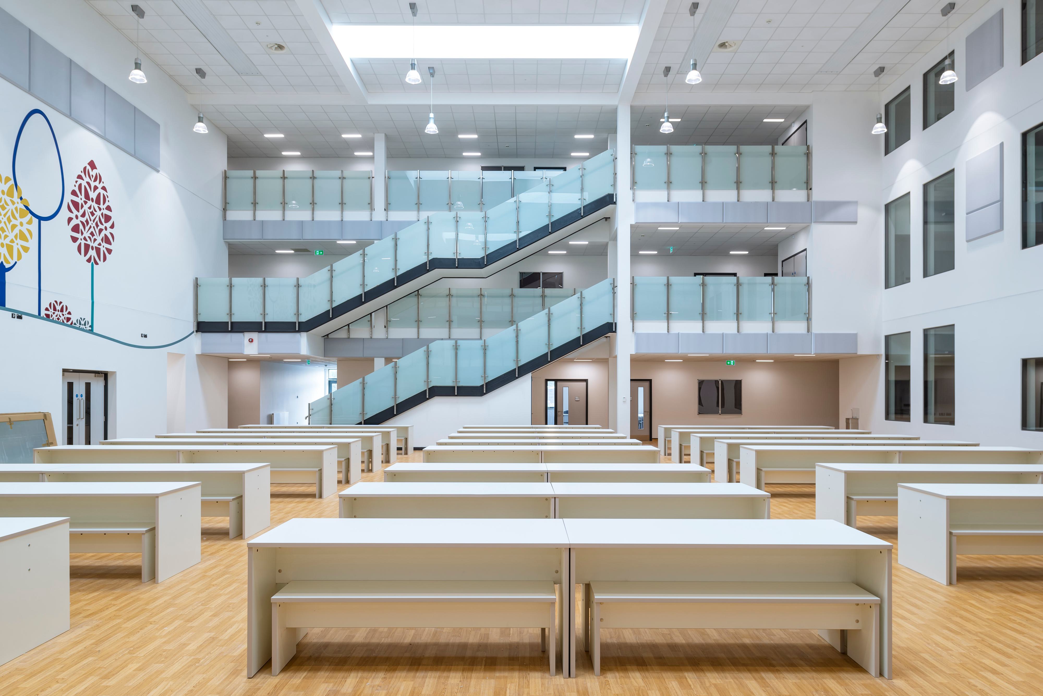 In particular, the layout creates three self-contained colleges within the overall structure, establishing a more intimate and nurturing environment; a shared central dining atrium creates a dramatic heart space shared by all colleges.