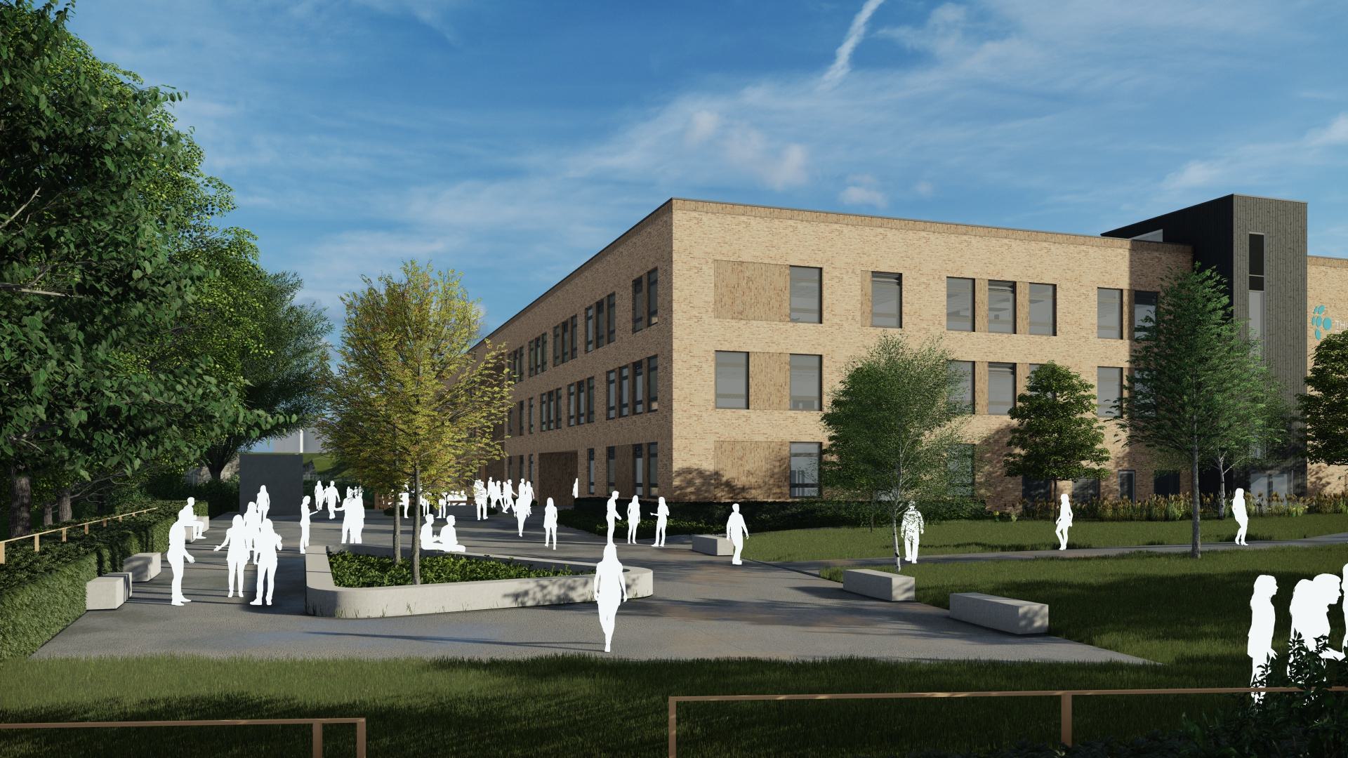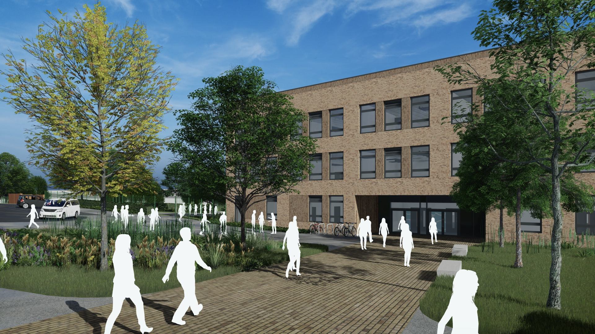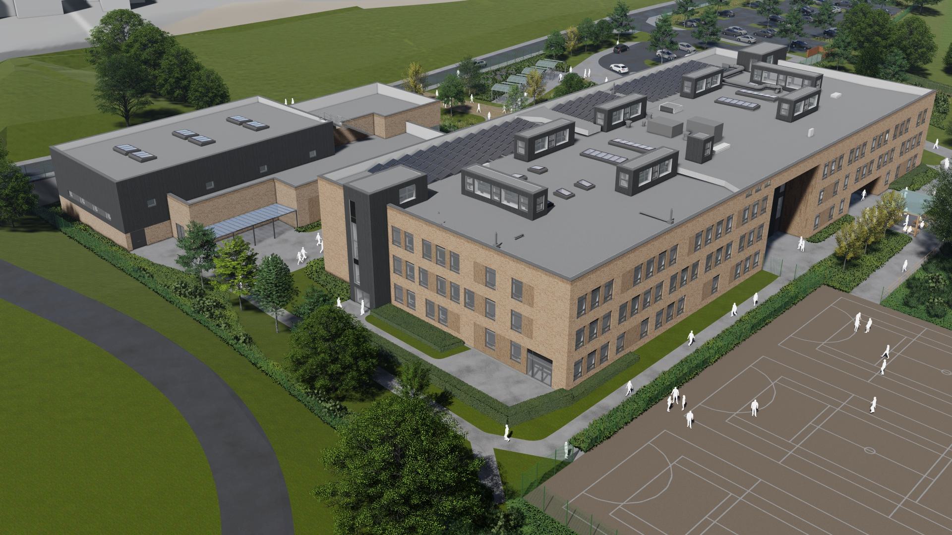 Internally, the departmental structure uses a grammar school model: in addition to clustered accommodation for Maths, English, Science and arts, the design includes a dedicated Sixth Form suite, Hall, Studio & Music co-located for performance. A ‘long-life loose-fit philosophy’ has been applied to the internal spaces, with flexible and well-proportioned teaching spaces accommodating future changes to curriculum with minimum need for remodelling, and large movable walls between key spaces providing agile environments for larger scale events and activities. The building is designed to be lifetime zero carbon, with carbon-negative operation offsetting the embodied carbon inherent in the construction itself, over a 60 year lifetime.