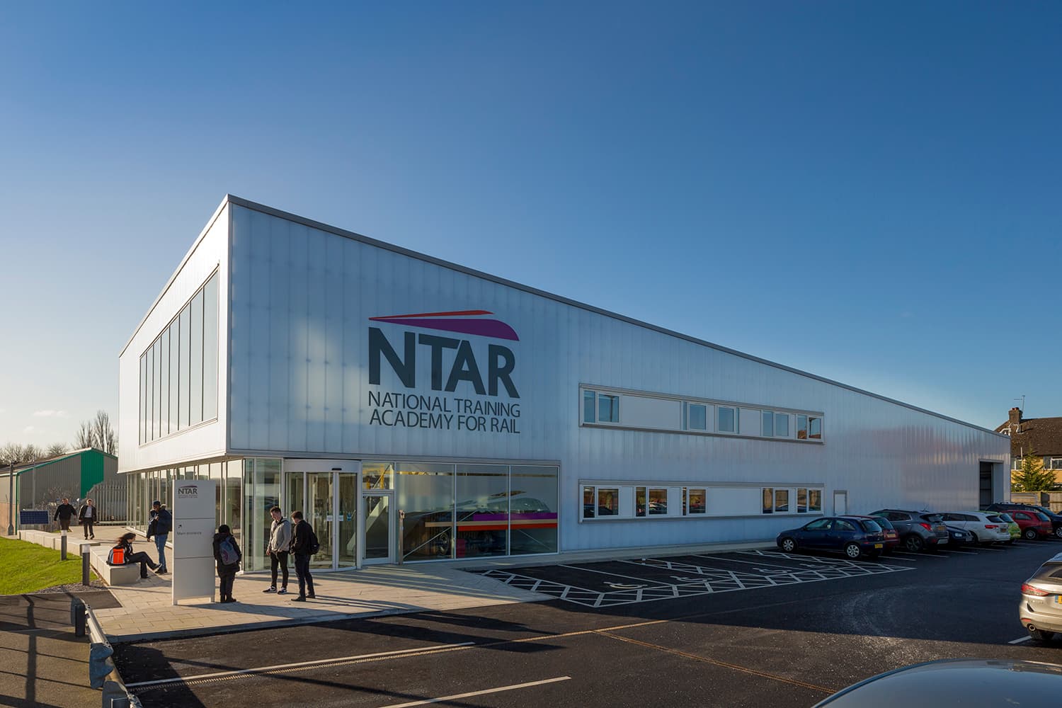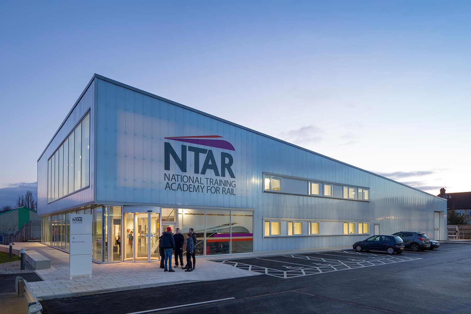 Located in Northampton, the National Training Academy for Rail (NTAR) is a purpose-built facility supporting specialist skills development in the UK rail industry. Working as part of a multidisciplinary team led by Arup, CPMG Architects delivered a design that balances functionality with a high-quality learning environment—reflecting the aspirations of Siemens Rail and NSARE. The building features a large-scale workshop alongside modern training and amenity spaces. Its simple, rectangular form with a mono-pitched roof is fully clad in translucent polycarbonate, creating a bold railway-facing elevation that glows when backlit—offering a contemporary aesthetic that supports its setting and purpose.